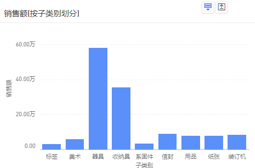 (7)再点击“办公用品”的柱子,则会进入华东地区办公用品下,产品子类别的分布数据。