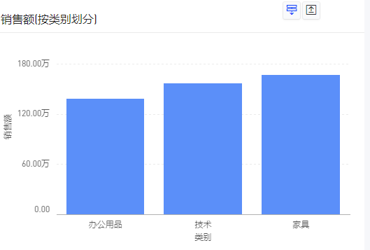 (5)再继续点击“家具”的柱子,则会进入华东地区家具下,产品子类别的分布数据;