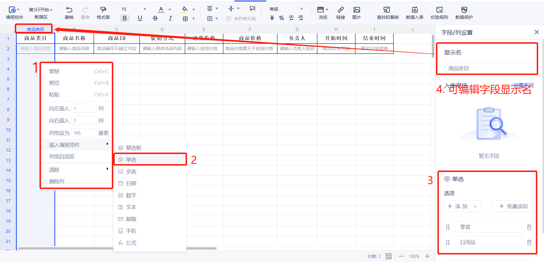 (1)在动态表格中,仅支持按列批量配置填报控件。而相较于制式表单控件,动态表格中新增公式控件